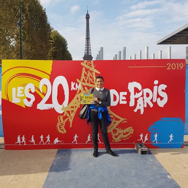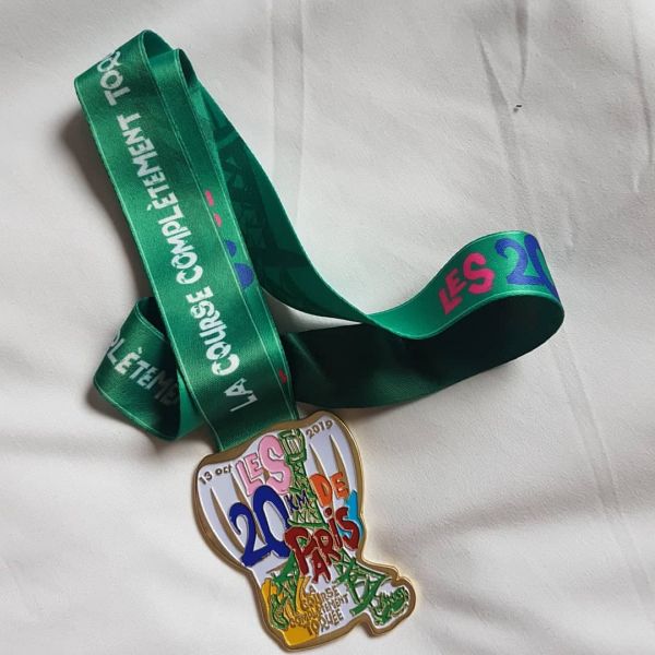 "Ma 2e participation aux 20km de Paris, Trocadéro, Arc de Triomphe, Bois de Boulogne, Roland Garros, Maison de la Radio, Grand Palais, Tuileries, Pont Royal, Berges Rive Gauche, arrivée Tour Eiffel,Très beau parcours avec la chaleur cette année qui a vraiment compliqué la course...."
